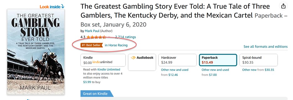 In addition, when your book reaches #1 status in any category, it earns the bestseller tag and the tag stays there while the book is in that position. See Mark Paul’s book The Greatest Gambling Story Ever Told: